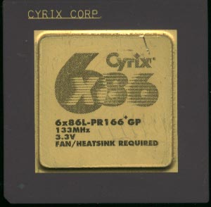 Generic Details: CISC, In-/Out-of-order and Dual Pipelined Execution Pipeline Depth: 1 (Shared) plus 2x 4+2 In-/Out-of-order (Dual Pipeline) Stages, 4x FP plus 4x FP Store Queue Instruction Decoder: 2x IA-32/Cycle Execution Units: 2x Integer, Non-pipelined FPU Execution Speed: Up to 2x IA-32/Cycle ----------------------------------------- The Cyrix design was used by: IBM ST Micro National Semiconductor -------------------------- Actual Speed: 133 Bus Speed: 66 Multiplier: 2 Fab'd By: IBM ---------------------------- The 'L' version is a low voltage part with lower power requirements.