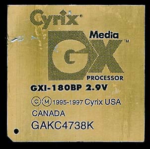 The MediaGX is why National bought Cyrix. Later AMD bought the GX (then the Geode) from National and it continues to be made today. ------------------------------------------------- Bus Speed: 30MHz Memory: 60MHz Multiplier: 6 Fab'd by: IBM -------------------------------------------------