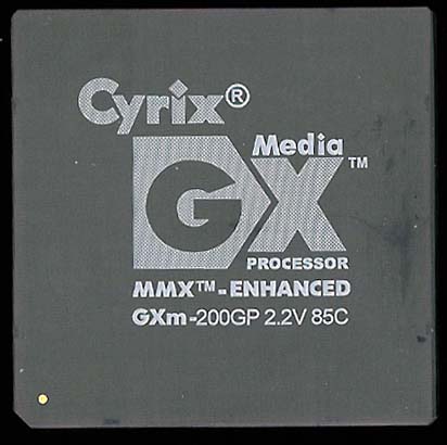 The MediaGX is why National bought Cyrix. Later AMD bought the GX (then the Geode) from National and it continues to be made today. ------------------------------------------------- Bus Speed: 33MHz Memory: 66MHz Multiplier: 6 Fab'd by: National -------------------------------------------------