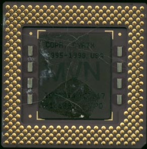 The 6x86MX and MII are closely based on the 6x86 with a few additions: MMX Support Support for more multipliers L1 Cache increased to 64K (from 16K) Doubled the Branch prediction. (to 512 entries) 32-bit optimizations 256 bytes Intruction cache (pre-L1 cache) ----------------------------------------- The Cyrix MX design was used by: IBM National Semiconductor -------------------------- Actual Speed: 166 Bus Speed: 66 Multiplier: 2.5 Fab'd By: IBM ----------------------------