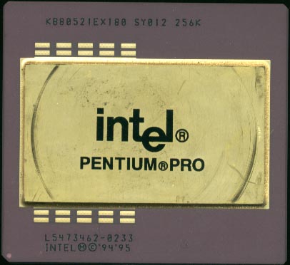 Intel Pentium Pro was the first processor from the Intel Pentium II processor family. Targeted for the server and workstation market, the Pentium Pro included integrated 256KB, 512 KB or 1 MB L2 cache running at the processor speed. The L2 cache in the Pentium Pro was not located on the same die as the CPU core. The CPU was packaged in a "dual cavity" package, where one cavity contained the processor die and another contained the L2 cache. As all other members of the Pentium 2 family, the Pentium Pro was optimized to run 32-bit applications and, when running in 32-bit mode, it significantly outperformed Pentium and Pentium MMX CPUs at the same clock speed. At the same time Pentium Pro performance with 16-bit applications was poor, and often the processor was slightly slower than similarly clocked Pentium/Pentium MMX processors. Poor performance of the Pentium II core with 16- bit applications was fixed in the desktop Pentium II CPU.