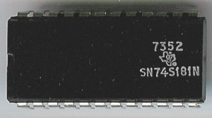 The 74181 was capable of running at 42MHz (and 90MHz for the 74S181 Schottky TTL versions) but in a set of 4 this drops to about 27MHz (with the carry generator taking some time). Speed, however, is usually limited by other things rather then the ALU itself. The 74181 ALU contains the equivalent of 62 logic gates (170 transistors) and can perform 16 different arithmetic and logic functions on a pair of 4-bit inputs. Ken Shirriff did an excellent die level analysis of a ‘181 thats worth reading. It includes pretty pictures even.